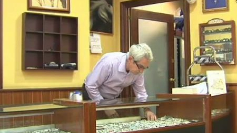 Un joyero ordena sus muestrarios para que nunca quede ni un hueco llibre. Así controla si le roban algo. Tiene bastante experiencia. Las imágenes de las cámaras de seguridad de su tienda muestran cómo una mujer esconde una pulsera en su puño. Otro hombre deja caer una cruz de oro en el bolso de su mujer. Los articulos de joyeria y los complementos de moda están entre los objetos más robados. Aunque el índice de hurtos ha bajado levemente este año en España, sigue siendo un problema para muchos comercios. Suponen 2.500 millones de euros de pérdidas al año.