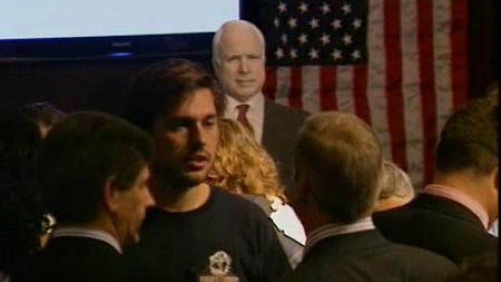 Unos doscientos partidarios del candidato republicano John McCain se han reunido esta noche en el Hard Rock Café de Madrid para seguir con esperanza la noche electoral en los Estados Unidos.Decorado con banderas norteamericanas y con una figura de John McCain de tamaño real, el céntrico local madrileño se ha convertido en sede de la fiesta republicana, donde se han repartido camisetas y chapas alusivas a John McCain y a su vicepresidenta Sara Palin.
