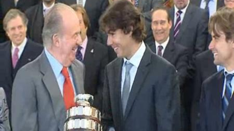 No han parado de reírse Rafa Nadal y el Rey. Se nota que se llevan muy bien, y que no le dan mayor importancia a la polémica de los guiñoles. Día ajetreado el que ha tenido la ensaladera. La expedición de la Davis se iba de excursión a la Zarzuela. El momento más esperado el encuentro del rey con Rafa, que le abrazaba con cariño. Pero la mañana comenzaba en la Moncloa, allí Rajoy les felicitaba y aprovechaba para dar un consejo: "El mejor desprecio es no hacer aprecio".
