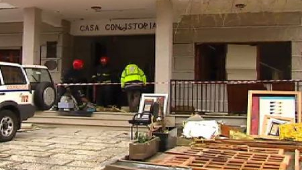 El ayuntamiento de Beade, en Orense, ha quedado destrozado tras la explosión de un artefacto que ha estallado poco antes de las 4 mañana frente a la puerta del consistorio. La explosión ha devastado la primera planta del edificio y ha causado importantes daños en la segunda. No hay heridos, a pesar de que no se avisó de la colocación de la bomba.Se investiga si Resistencia Galega está relacionada con el atentado y si se trata de una venganza contra el alcalde, Senén Pousa, que en varias ocasiones ha mostrado públicamente su simpatía hacia el franquismo. La zona sigue acordonada.