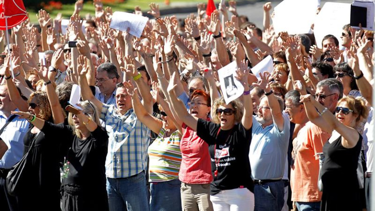 Imágenes del corte del tráfico protagonizado por los funcionarios esta mañana a causa de las nuevas medidas de ajuste del Gobierno y su repercusión en sus condiciones laborales.
