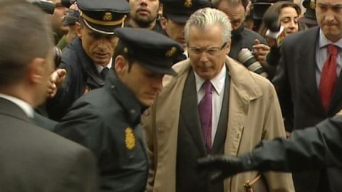 El juez de la Audiencia Nacional Baltasar Garzón ha acudido a las 10.30 horas al TS donde declarará como imputado en los presuntos delitos de prevaricación y cohecho en relación con los cobros que pudo percibir de la organización de unos cursos en la Universidad de Nueva York.