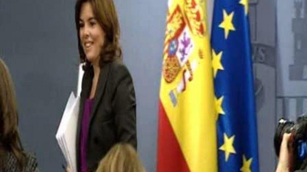La vicepresidenta del Gobierno, Soraya Sáenz de Santamaría, quien, ha explicado que ellos únicamente han mantenido la decisión de recorte del sueldo de los empleados públicos que tomó el anterior Gobierno.