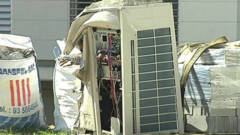 El brazo de una grúa se desplomó ayer encima de un edificio vacío de la Facultad de Ciencias de la Universitat Autònoma de Barcelona (UAB), mientras realizaba tareas de instalación de un aire condicionado en el techo de la construcción.
