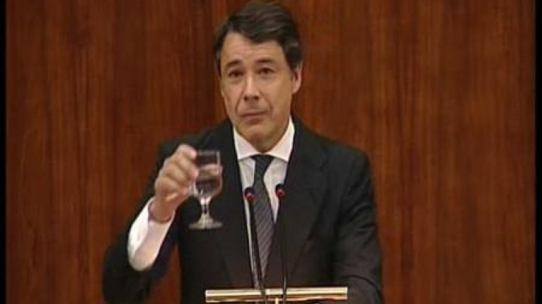 Ignacio González, candidato a presidente de la Comunidad de Madrid por el Partido Popular, tras la renuncia de Esperanza Aguirre, se ha emocionado esta mañana en la tribuna de oradores de la Asamblea de Madrid cuando estaba pronunciando su discurso de investidura. González, hasta ahora, vicepresidente del ejecutivo autonómico, cuenta con los votos necesarios para ser investido presidente en primera vuelta.