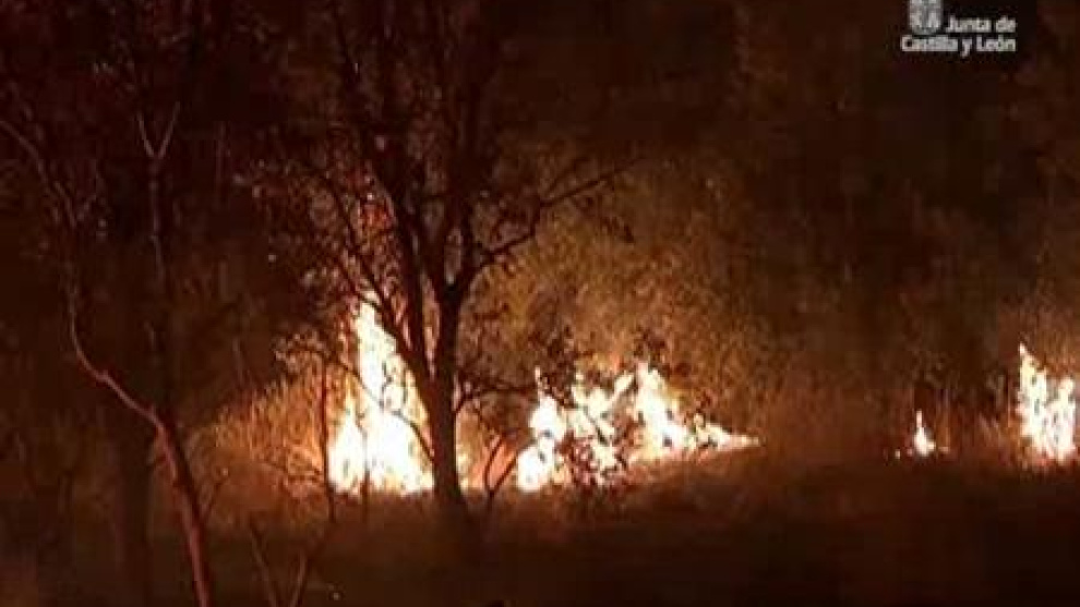 Sigue activo y sin control el incendio que se declaró el domingo en la localidad leonesa de Castrocontrigo.Durante la noche han continuado las labores de extinción y la imagen del incendio es dantesca. De tragedia y catátrofe lo ha calificado el presidente de Castilla y León y es que el fuego ha consumido ya cerca de 10.000 hectáreas.Unos 800 efectivos y una veintena de medios aéreos trabajan incansables para controlar el fuego que se cree ha sido intencionado.El presidente de Castilla y León, Juan Vicente Herrera, visitó ayer el puesto de mando avanzado del incendio y desde allí ha reclamado la colaboración ciudadana para denunciar "al criminal que con sus actos ha provocado esta catástrofe".El alcalde de la localidad por su parte acusa del fuego a "algún malnacido que le dio por quemar algo" y asegura que estas noches han sido infernales para los vecinos.