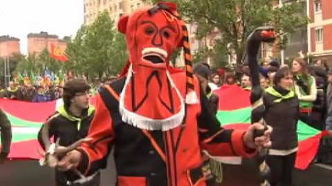 La izquierda 'abertzale' ha celebrado su propio 'Aberri Eguna' (Día de la patria vasca) marcando distancias con los nacionalistas de derechas del PNV. Y lo han plasmado al celebrar sus actos en Pamplona, Navarra y no en Bilbao, donde lo han hecho los segundos. Miles de personas han reclamado por las calles de la capital de Navarra el derecho a decidir. Lo han hecho convocados por la 'Red Independentistak' que aúna a Sortu, EA, Aralar, Alternativa y AB. Las 'ikurriñas' vascas y las 'esteladas' (bandera de los nacionalistas catalanes) han ondeado por las calles de 'Iruña', donde ha resonado la palabra 'independentzia'. Tras la manifestación se ha celebrado un acto reivindicativo para exigir el derecho a decidir.