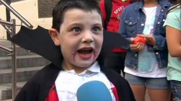 Han llorado porque hoy hasta los angelitos se convierten en pequeños demonios, los colegios hoy estaban llenos de brujas, de esqueletos y también de calabazas y de murciélagos. Hasta los profesores se han puesto sus galas más oscuras, cosa que a alguno le ha dado mucho miedo, aunque algunos están encantados con haberse disfrazado hoy para ir al cole. Pero los mayores también ultimas las compras para engalanarse esta noche ¿Los trajes estrellas? Los trajes de Ébola y los de enfermera sangrienta.