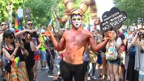 Este sábado, Madrid disfruta siendo escenario de una de las mayores fiestas que cada año tienen lugar en la capital: la marcha del Orgullo gay. Fiesta y también reivindicación. Este año, miles de personas han participado en la manifestación, acto central del "Orgullo LGTB", bajo el lema "Nos manifestamos por quienes no pueden", en defensa de todas las personas que sufren persecución en más de 80 países por razón de su orientación sexual. La marcha del orgullo gay en Madrid es posiblemente la más masiva de Europa, y quizás del mundo. Su crecimiento ha sido exponencial en los últimos años. Y esto ha provocado cierta controversia con la Delegación del Gobierno y el Ayuntamiento sobre su recorrido. Pero, aparte de la polémica, es evidente que es un éxito de convocatoria, una fiesta increíble. Entre los asistentes se encuentran multitud de familias que acuden con sus hijos pequeños a disfrutar de la fiesta, al igual que extranjeros venidos de todo el mundo y españoles procedentes de toda España. -Redacción-