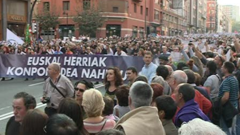 Bildu reclama el "respeto" a la "decisión de decidir de Euskal Herria" y que se den más pasos hacia "la normalización". Miles de personas han secundado hoy en Bilbao la manifestación convocada por los firmantes del Acuerdo de Gernika.