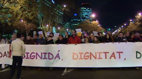 Cientos de personas se han manifestado por el madrileño paseo de la Castellana en una movilización que continúa con las reivindicaciones de las marchas de la Dignidad que el pasado sábado confluyeron en Madrid. Una vez en la Puerta del Sol y estrechamente viIgilados por los antidisturbios, han celebrado una asamblea. A pocos metros, los agentes trataban de identificar a algunos ciudadanos, que se mostraban reticentes. Mientras, otros preparaban sus pertenencias para pasar la noche acampados en Sol.