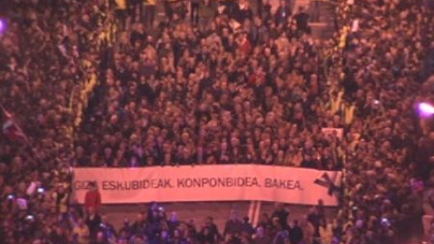 Miles de personas han recorrido esta tarde Bilbao en la que ha sido una de las manifestaciones más secundadas de los últimos años en el País Vasco. Convocada por Sortu y el PNV y pendiente de un hilo su celebración hasta que un juez de la Audiencia Nacional la ha permitido la manifestación de hoy. Ha sido en principio silenciosa pero se han escuchado gritos a favor del acercamiento de presos etarras a cárceles de Euskadi.