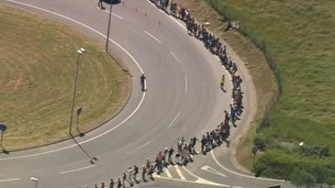 Se espera que en torno a 100 mil personas unan hoy sus manos en una línea de 123 kilómetros de longitud que unirá la localidad navarra de Pamplona y Durango, en Vizcaya. Es la cadena humana por el derecho a decidir de los vascos, organizada por Gure Esku Dago (Está en nuestra mano), una iniciativa similar a la que se celebró en Cataluña y a la que se han apuntado más de 100 mil personas. Unos 2.500 voluntarias se encargan desde primera hora de la organización del evento, que cuenta con unos 900 autobuses que se encargan del traslado de los voluntarios y de los asistentes. -Redacción-