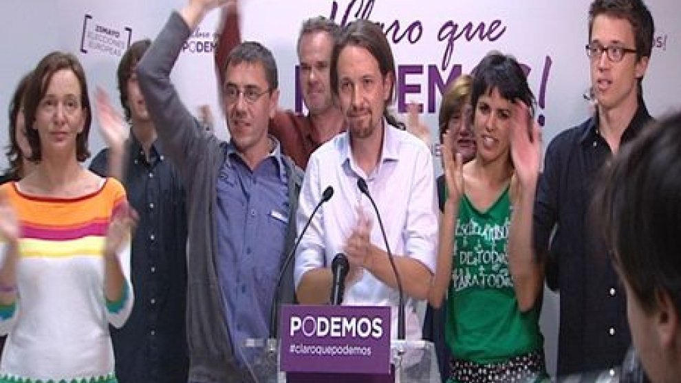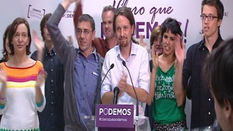 Una explosión de alegría difícil de contener inundó el cuartel general de Podemos en Madrid cuando en pantalla aparecieron los resultados de las elecciones europeas. La formación comandada por Pablo Iglesias, a la que los sondeos más generosos con sus posibilidades otorgaban de dos a tres escaños, ha alcanzado finalmente los cinco, superando ampliamente el millón de votos. Su líder, Pablo Iglesias, ha declarado tras conocer los resultados que si bien es cierto que "los partidos de la casta han recibido el más serio correctivo de su historia en las urnas" su formación no ha podido "cumplir el objetivo de superarles en las urnas". "Mañana seguirá habiendo desahucios, mañana seguirá habiendo seis millones de parados; Podemos no nació para ocupar un papel testimonial: nacimos para ir a por todas y nuestro desafío a partir de mañana es construir con otros un alternativa política de gobierno e nuestro país", ha dicho. Iglesias ha opinado también que "quizás pueda hablarse del principio del fin del bipartidismo" tras estos resultados". "Están en retirada, lo que nos toca ahora a nosotros es perseguirles la retirada. No nos conformamos con esto, forman parte del problema y hay que echarlos", ha concluido. -Redacción-