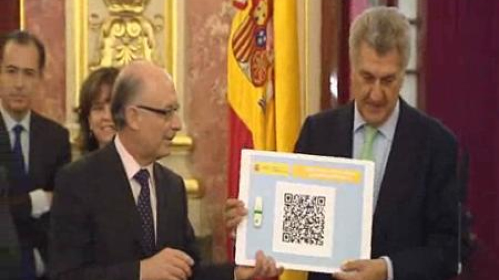 El ministro de Hacienda y Administraciones Públicas, Cristóbal Montoro, ha entregado esta mañana en el Congreso de los Diputados, el proyecto de Ley de los Presupuestos Generales del Estados para el año 2012. El presidente del Congreso de los Diputados, Jesús Posada, ha recibido en formato BIDI, la entrega de los Presupuestos por parte de Montoro, quienes han estado acompañados en la presentación del presidente de la Comisión de Presupuestos, Alfonso Guerra.
