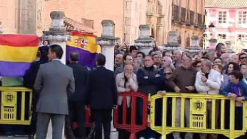 Los Príncipes de Asturias han acudido esta mañana a la Universidad de la localidad madrileña de Alcalá de Henares para presidir la entrega del Premio Cervantes de literatura a José Manuel Caballero Bonald.Decenas de personas han acudido a presenciar los actos protocolarios y la llegada de las autoridades al Paraninfo.A su entrada, los Príncipes y Mariano Rajoy han sido recibidos con algunos abucheos por parte de un grupo de personas que exhibían banderas republicanas.