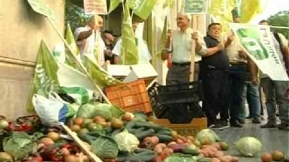 Hay rabia contra Alemania en el sector hortofrutícola español. Los agricultores valencianos, en un acto de protesta organizado por la Unió de Llauradors, han tirado esta mañana 300 kilos de fruta, verdura y hortalizas ante el consulado alemán de la capital del Turia. Esta organización agraria denuncia así las pérdidas que está sufriendo el sector por el boicot del país germano al estallar la denominada "crisis del pepino". Las decenas de trabajadores del campo que se han concentrado han querido poner el foco mediático en el hecho de que tienen que tirar estos productos (pepinos, tomates, patatas, pimientos, albaricoques o ciruelas) porque no están pudiendo venderlos debido a las acusaciones de Alemania.
