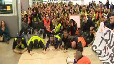 Protestas en Barajas de los trabajadores de Spanair