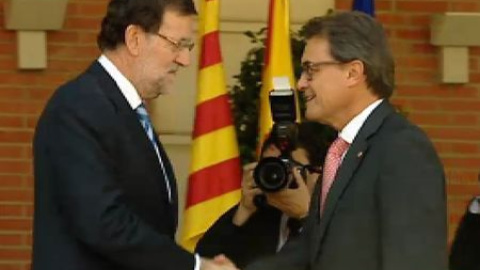 Sin bajar la escalinata para saludarle, y con las sonrisas justas, Mariano Rajoy ha recibido a Artur Mas en el palacio de la Moncloa. Es su quinto encuentro en la sede de la presidencia del Gobierno. Ante las cámaras, la conversación se ha limitado a hablar de las vacaciones. El asunto de fondo, la consulta catalana se ha quedado para un encuentro privado que que ha durado dos horas y veinte minutos.
