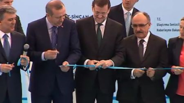 El presidente del Gobierno, Mariano Rajoy, ha inaugurado el metro de Ankara, construido por una empresa española, durante su visita oficial a Turquía.Tras recorrer 6 estaciones de la nueva línea junto al primer ministro turco, Recept Tayip Erdogan, Rajoy ha partipado en un acto de inauguración en un auditorio al aire libre.Junto a banderas de España y Turquía, en las gradas se han visto banderas del partido de Erdogan. Al parecer, este acto en el que el jefe del Ejecutivo español pretendía promocionar las empresas españolas se ha convertido en un mitin de precampaña electoral ante unos 5000 seguidores islamistas.El presidente español ha mostrado su orgullo por el hecho de que una empresa española se haya hecho cargo de la infraestructura del metro de Ankara. También ha reconocido haberse sentido orgulloso al oir el himno español durante el acto.