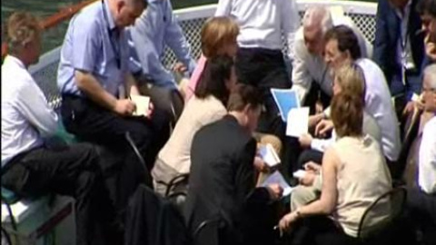 El presidente del Gobierno, Mariano Rajoy, se ha reunido este domingo en Chicago con la canciller alemana, Angela Merkel. Ambos líderes han hecho juntos un recorrido en barco entre los rascacielos de la ciudad estadounidense. Su objetivo era hablar de la difícil situación económica del continente y de España. Antes de esa reunión, Rajoy ha asegurado a los medios que no tenía previsto pedir "nada en concreto" a la canciller y que le explicaría que está haciendo lo que cree "que hay que hacer porque es lo que necesita España".