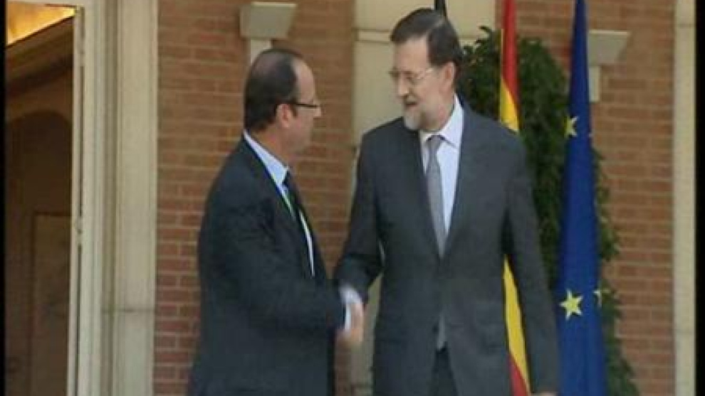 El presidente del Gobierno, Mariano Rajoy, ha recibido hoy en el Palacio de La Moncloa al presidente francés, François Hollande. Ambos presidentes analizarán durante su encuentro la situación económica y fiscal de la Unión Europea y la crisis de estabilidad que sufre el euro.Esta cita con Hollande forma parte de la ronda de encuentros que Mariano Rajoy está manteniendo con diversos líderes europeos. El pasado martes ya se reunió con el presidente del Consejo Europeo, Herman van Rompuy, y lo hará el próximo seis de septiembre con la canciller Angela Merkel.