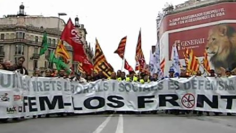 Este domingo en Barcelona, miles de personas han participado en una nueva protesta contra el Gobierno de Rajoy y sus medidas infructuosas de austeridad, que lejos de sacar al país de la crisis están provocando un empeoramiento de la mayoría de indicadores sociales y económicos. Desde las doce de la mañana y pese a que el mal tiempo amenazaba con neutralizar la marcha, miles de personas se manifiestan en Passeig de Gràcia contra la "privatización" de la educación y la sanidad pública. En la protesta han confluido así dos de las principales 'mareas' sociales contra la política de austeridad que está aplicando el Govern de Artur Mas.