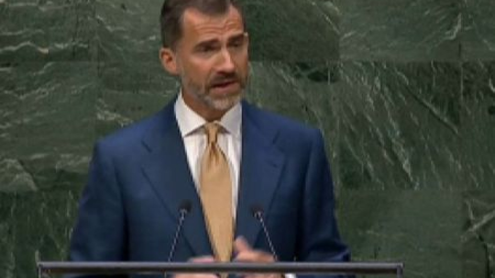 El rey ha llegado a la ONU por primera vez como jefe del Estado español con un discurso que apuesta por una Europa "más unida y cohesionada". "Propugnamos una Europa más unida y cohesionada, que preserve y extienda los valores democráticos y cívicos que inspiraron su creación, y que trabaje para garantizar la prosperidad de todos sus ciudadanos. También defendemos una Europa fuerte y solidaria que contribuya, con generosidad y eficacia, al progreso en paz de todas las regiones del mundo", ha expresado Felipe VI ante la Asamblea General. El monarca también ha defendido la democracia española y la "gran obra política" que significó la Transición en nuestro país. "La democracia es hoy guía esencial de nuestra convivencia colectiva. Pronto se cumplirán cuatro décadas de la transición política española, que nos permitió pasar de una dictadura a un sistema político de libertades y derechos, marcados por un afán de reconciliación histórica y un verdadero espíritu de concordia. Permítanme -ha continuado- reivindicar con orgullo y con emoción esa gran obra política de los españoles, ejemplo para muchos en el mundo", ha afirmado Felipe VI.