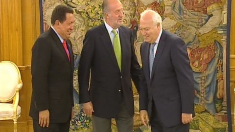 El Rey Don Juan Carlos recibe al presidente de Venezuela, Hugo Chávez, en la Zarzuela para tratar de limar asperezas tras el famoso "porqué no te callas".