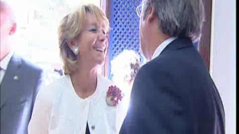La presidenta de la Comunidad de Madrid, Esperanza Aguirre, ha aprovechado el acto de apertura del curso académico, en el que ha coincidido con el ministro de Educación, para pedirle su dimisión. "Lo que yo quiero es que dimitas por alentar a la huelga política�", le ha dicho entre risas. Gabilondo le responde, aunque no es captado por los micrófonos, a lo que Aguirre apostilla: �Si te viene fenomenal dimitir a ti en estos momentos��