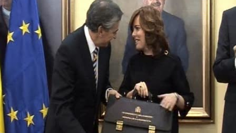 Ramón Jáuregui ha entregado la cartera del ministerio de la Presidencia a su nueva titular, Soraya Sáenz de Santamaría.