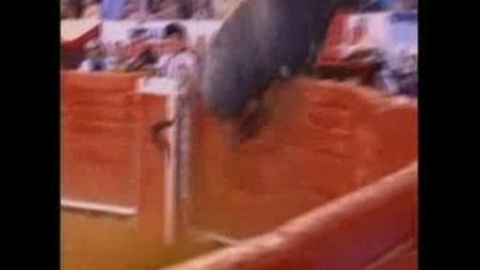 Nadie se lo podía imaginar. El toro acababa de salir de la puerta de toriles pero cogió la carrera suficiente como para saltar. Los espectadores se quedaron atónitos. Algunos fueron golpeados y corneados por el toro. Un torero resultó herido.