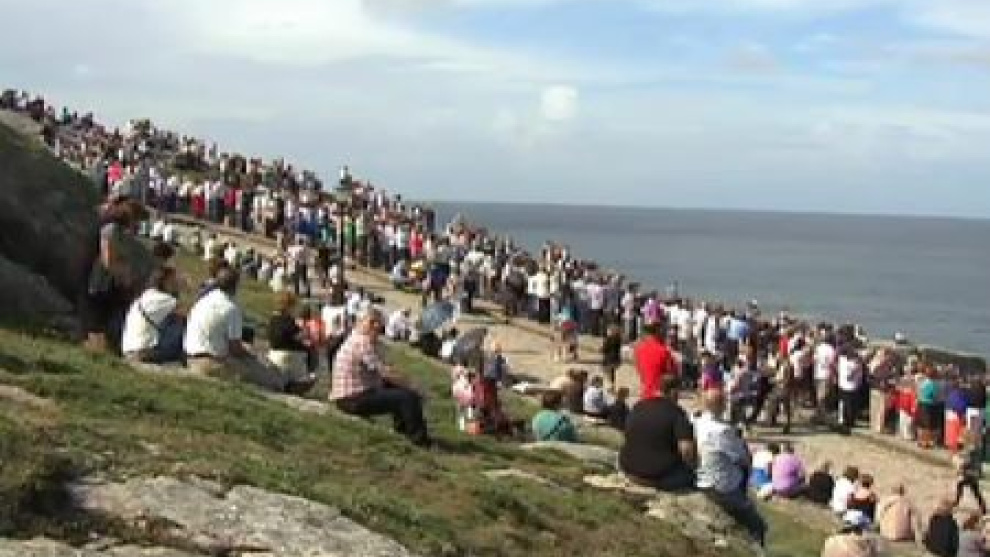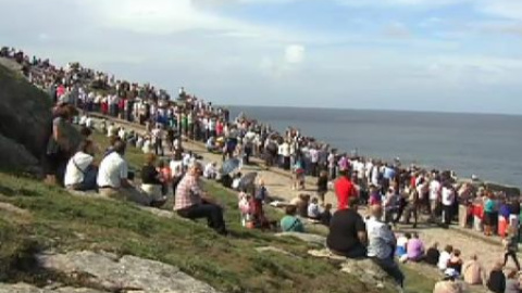 Es el gran día de Muxía, pero esta localidad de Costa da Morte tiene el corazón herido. El templo de la Virgen aún no se ha repuesto de la caída de un rayo la pasada navidad. Rodeado de andamios sigue cerrado. Los trabajos de restauración, presupuestados en 750 000 euros no se ha acabado para el gran día. Ahora toca lidiar con el agua caída en el invierno. Después habrá que restaurar los retablos laterales y el Altar Mayor. Sólo la imagen de la virgen, custodiada siempre en el exterior, ha salido indemne del pasado y crudo invierno. Un pequeño milagro que hoy mantiene el espíritu de este santuario. -Redacción-