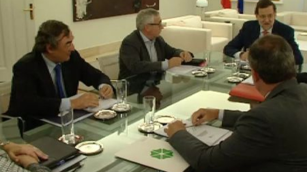 El presidente del Gobierno, Mariano Rajoy, ha recibido esta mañana a los agentes sociales representados por los líderes de UGT, CCOO y la CEOE. En la reunión también ha estado presente la ministra de Trabajo, Fátima Báñez. Los sindicatos han pedido al Ejecutivo compromisos concretos y entre las propuestas que han puesto encima de la mesa es un plan de protección para 500.000 hogares sin ingresos, que cifran en 2.500 millones de euros.