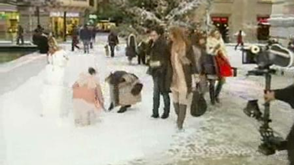 No han piensen que las Navidades se han adelantado, es un anuncio. Y se trata de uno de los más célebres. El de la Lotería Nacional. El escenario elegido año ha sido Bilbao. Allí han simulado la nieve, las compras navideñas y han instalado un árbol de seis metros de altura que cobrará vida en la televisión. El rodaje se completará mañana en Barcelona. Que la suerte nos acompañe a todos.