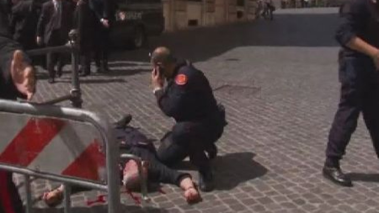 A las once de la mañana el pánico se apoderaba de la Plaza Colonna, en pleno centro de Roma, una zona muy concurrida por turistas y romanos.Acaba de haber un tiroteo. Dos carabineros están heridos.