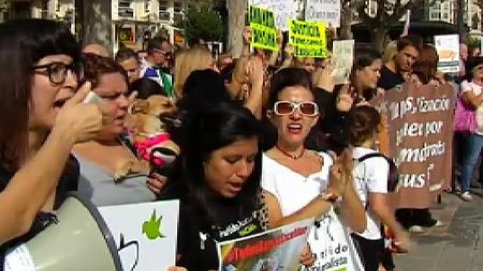 Al grito de 'derechos ya para los animales'. Cientos de valencianos, muchos en compañía de sus mascotas, se han concentrado en la plaza del ayuntamiento para mostrar su repulsa por el sacrificio de Excálibur. Con mensajes como 'Humanidad, ¿dónde te fuiste?', miembros y simpatizantes del Partido Animalista y de Igualdad Animal han ofrecido su apoyo y solidaridad a Teresa Romero. Piden la dimisión de la ministra de Sanidad. Alegan que su incompetencia se ha cobrado la vida de un animal. El pasado martes, cuando se conoció la existencia del perro, el Partido Animalista ya pidió que no se sacrificase. Al día siguiente, se ofrecían incluso a asumir los gastos derivados del aislamiento y las pruebas del animal. Insisten en que no existen referencias sobre el contagio del virus de animales a humanos y que, sólo por eso, Excálibur merecía una oportunidad.