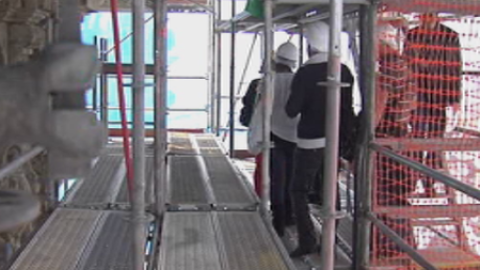 Entre restauraciones y goteras, quienes han visitado este año la Catedral de Santiago no la han encontrado en su mejor momento. Por eso, ahora se organizan visitas guiadas para ver el estado de las obras. Para ello hay que ponerse el casco de obra para disfrutar de la iniciativa. Quienes se animen a subirse al andamio podrán ver de cerca detalles arquitectónicos que no se aprecian desde abajo, descubrir cómo se desmonta una cúpula con más de 800 años y enterarse de en qué están consistiendo los trabajos de rehabilitación. Todo por un módico precio de 25 euros que servirán, además, para seguir pagando la restauración. Dinero se necesita, y mucho. Más de seis millones y medio para acabar con las goteras y el resto de patologías que sufre la catedral. Una iniciativa sorprendente para ayudar a solventar una situación urgente.