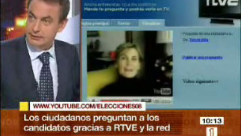 'Los Desayunos de TVE' trasladó al presidente del gobierno las primeras preguntas formuladas a los ciudadanos desde YouTube. La economía y el trabajo, los primeros temas (https://www.youtube.com/elecciones08).