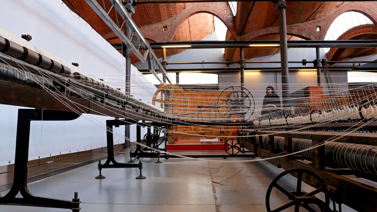 La llamaban mule-jenny. Era una máquina para hilar, pero no totalmente automática: un operario tenía que empujar su carro móvil. Podía manejar hasta 120 husos. Creada hacia 1770 por el inglés Samuel Crompton, su introducción en Catalunya fue lenta. En la década de 1840 solía sustituir a otras máquinas autóctonas, las denominadas berguedanes. Ahora, casi dos siglos más tarde, esta mule-jenny puede verse de cerca en el Museu Nacional de la Ciència i de la Tècnica de Catalunya (mNACTEC), en Terrassa. Un museo que tiene también su historia. En los setenta, la Associació d’Enginyers Industrials de Catalunya recuperó una iniciativa de los años de la Generalitat republicana y que el franquismo había congelado: dedicar un museo a la ciencia y la técnica. El objetivo era preservar la memoria de una actividad vital para la economía catalana y, en concreto, para la zona del Vallès: la industria. El Departament de Cultura aceptó el reto y en 1983 compró la fábrica Aymerich, Amat i Jover, un antiguo vapor textil lanero, diseñado a principios del siglo XX por Lluís Muncunill, quien reinterpretó el tradicional techo fabril de dientes de sierra utilizando la nostrada volta catalana. El recinto abrió de nuevo en 1984 convertido en museo. El actual mNACTEC tiene 22.200 m2 de superficie, de los cuales la mitad corresponden a la antigua nave de producción, un enorme espacio diáfano que se encarga de acoger las principales exposiciones.