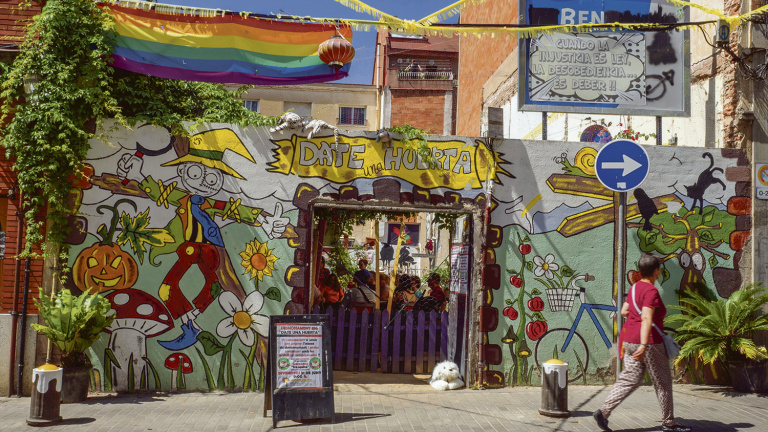 Date una Huerta es uno de los múltiples lugares de Barcelona cuyo disfrute está en disputa por los intereses contrapuestos de vecinos e inmobiliarias. Se ubica en el número 79 de la calle Joaquim Valls, cerca de la salida de la estación de la línea 4 de metro de Via Júlia. El huerto nació para traer el campo a la ciudad, para darle color al gris, pero la propiedad tiene otros planes. La primera orden de desahucio estaba fijada para febrero. La última, para el pasado 21 de junio. Tras ellas está Divarian, sociedad que gestiona el negocio inmobiliario propiedad del fondo estadounidense Cerberus (80%) y del banco BBVA (20%). Divarian tiene intención de vender el solar, que es edificable. Los ocupantes del espacio aseguran que la parcela aparecía en un portal inmobiliario a la venta por un precio entre 540.000 y 640.000 euros, pero por ahora la transacción no se ha ejecutado. Los vecinos temen que se especule en un terreno al que ellos han dado un uso social.