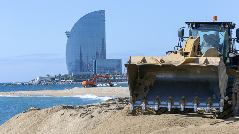 Máquinas excavadoras de todo tipo se mezclaban hace unos días con turistas y vecinas que se relajaban en las ya concurridas playas de Barcelona, o practicaban algo de deporte. Las altas temperaturas parece que no acaban de llegar esta temporada, pero el clima suave y el sol invitan a disfrutar de un espacio que cada año es preciso retocar un poco más, en su puesta a punto para bañadores y bikinis: remover la tierra, redistribuir acumulaciones, allanar pendientes hacia la orilla o traspasar arena de una playa a otra. Los ciclos marinos se entestan cada curso en alterar el litoral, y la sociedad se empecina en remediarlo, al menos cuando se trata de playas en las que bañarse. De un tiempo a esta parte, no obstante, profundos cambios en la naturaleza y la corrosiva acción del hombre están, paradójicamente, planteando serios problemas en el mantenimiento de los arenales catalanes.