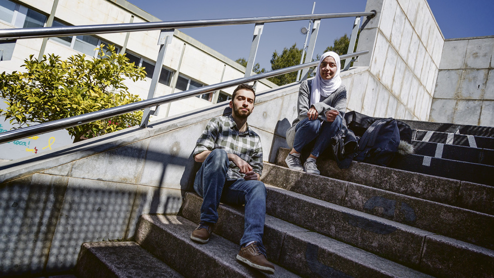 El joven sirio, que se comunica con resultados notables en catalán, forma parte del citado proyecto de la UAB que facilita el estudio de grados, másteres y doctorados a personas refugiadas; una extensión del programa de acogida que desde 2016 ofrece la FAS junto con la Comisión Española de Ayuda al Refugiado, y con el que prestan alojamiento, asesoramiento y orientación lingüística o laboral a personas en condición de asilo y refugio. Casi 200 personas se han beneficiado ya de la iniciativa, que les abre las puertas de la universidad y sus servicios –las bibliotecas o las instalaciones deportivas, por ejemplo– y en la que participan decenas de voluntarios. Una de ellas es Khaoula, estudiante de Educación Social que en primero de carrera decidió enrolarse en el programa para ayudar a gente que acababa de aterrizar en Catalunya sin conocer el idioma, sin amigos y, en muchos casos, también sin familia.