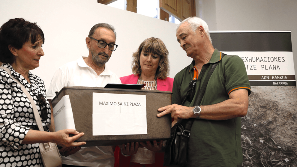 El pasado 7 de junio la consejera de Relaciones Ciudadanas del Gobierno de Navarra le entregó los restos mortales de su tío, de Máximo Sainz Plaza. Lo hizo en una ceremonia celebrada en el Palacio de Navarra, en Pamplona. Se culminó así un proceso que comenzó en 2016 cuando fue exhumado el cuerpo, junto al de otras 15 personas, en la que era la primera actuación de la Dirección General de Paz, Convivencia y Derechos Humanos. Se trataba de la exhumación de la fosa que pasó a la historia como ‘los 16 de Olabe / Olave‛, que en la actualidad es Lugar de Memoria Histórica de Navarra y final de la primera etapa del GR225, una ruta de tres tramos que recorre la fuga de los presos del Fuerte de San Cristóbal.