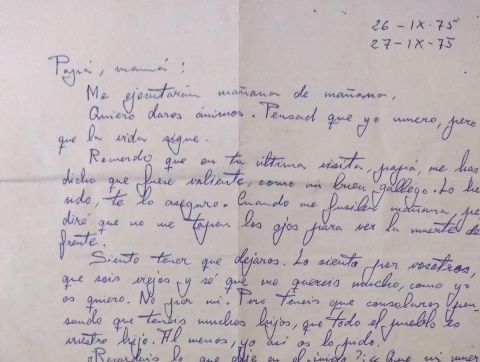 De los tres consejos de guerra celebrados por la muerte del policía salieron 11 condenas a muerte. Mi padre insistía en que era imposible que mi hermano estuviera implicado en este asunto. Mi padre escribió al príncipe de Juan Carlos, al ministro de Justicia… No pidiendo clemencia. Solo un juicio justo. Pero de nada sirvió. No hicieron caso. No hicieron nada. No movieron un dedo por la justicia. La verdad, nunca creímos que se atrevieran a matarlos. No podíamos pensar que serían capaces de cometer tamaña injusticia.