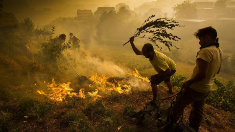 Fotogalerías Este artículo se publicó hace 10 años.Arde GaliciaTamaño de letraColor de fondoComparteComentaPúblico 11/08/2016 19:16Tamaño de letraColor de fondoComparte0Comenta Varios hombres intentan apagar el incendio de Soutomaior con una rama, en Pontevedra, por el que se ha decretado la "Situación 2"/EFEPublicidad Tres vecinos corren desesperados a apagar el fuego en un pueblo de Pontevedra, que estaba muy próximo a sus casas/EFE El incendio de Soutomaior ha llegado a la playa fluvial del río Verdugo ante la atenta mirada de sus vecinos, que disfrutaban de un baño/EFE Dos vecinas hablan ante las llamas, que cada vez se acercan más a la población de Arbo (Pontevedra), donde se ha decretado "Situación 2"/EFE Un bombero muy cercano al fuego intenta apagarlo con una manguera en Santiago de Compostela/EFEPublicidad Un bombero observa una zona calcinada por el fuego en Pontevedra/EFE Vecinos afectados por los incendios cuelgan carteles dando las gracias a los bomberos y personas que ayudan a extinguir los incendios/EFE Una mujer observa como se acerca el fuego en Pontevedra con una manguera en la mano/EFEPublicidad Han sido muchos voluntarios los que han ayudado a la extinción de los fuegos, en esta fotografía un hombre de Arbo, observa el fuego con una rama/REUTERS Un grupo de personas recoge agua de una piscina para sofocar el fuego que se acerca a lo lejos a Soutomaior (Pontevedra)/EFE Un vecino ayuda a extinguir el indencio de San Juan de Fecha (Santiago de Compostela) de nivel 2, que ha obligado a desalojar varias poblaciones/EFEComparteComentarios de nuestros socias/os¿Quieres comentar?Para ver los comentarios de nuestros socias y socios, primero tienes que iniciar sesión o registrarte. Escribe tu comentario Recuerda las normas de la comunidad.Enviar Descartar