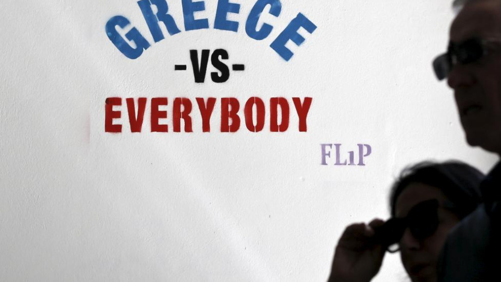 Fotogalerías Este artículo se publicó hace 10 años.Arte callejero en Atenas contra la troikaTamaño de letraColor de fondoComparteComentaPúblico 12/06/2015 19:16Tamaño de letraColor de fondoComparte0Comenta Uno de los grafitis que pueblan las calles de Atenas contra el denominado Grupo de Bruselas, antes conocido como la troika. - REUTERSPublicidad Una mujer pasea al lado de un mural en el centro de Atenas. - REUTERS "La muerte del euro". Grafiti del artista callejero francés Goin. - REUTERS El símbolo de la anarquía en el logo del Banco de Grecia. - REUTERS Una mujer pasea por el centro de Atenas junto a una pintura en contra del FMI.- REUTERSPublicidad "¿Dónde están mis drahmas?" Otra pintada en el centro de Atenas. - REUTERS Caricatura de la canciller alemana, Angela Merkel. - REUTERS "Atenas vs Europa, resistir vs someterse". - REUTERSPublicidad Dos agentes antidisturbios junto a dos pintadas contra el FMI. - REUTERS Grafiti de julio de 2012. - REUTERS La entrada de la delegación de la Comisión Europea en Atenas tras una manifestación. Abril de 2015. - REUTERS Un billete de dolar modificado. - REUTERSComparteComentarios de nuestros socias/os¿Quieres comentar?Para ver los comentarios de nuestros socias y socios, primero tienes que iniciar sesión o registrarte. Escribe tu comentario Recuerda las normas de la comunidad.Enviar Descartar