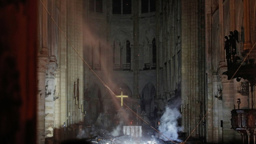Fotogalerías Este artículo se publicó hace 7 años.Catedral de Notre DameAsí ha quedado el interior de Notre Dame tras el incendioTamaño de letraColor de fondoComparteComentaPúblico 16/04/2019 10:42Tamaño de letraColor de fondoComparte0Comenta Interior de la catedral de Notre Dame tras el incendio. El altar está rodeado de trozos de madera carbonizada. PHILIPPE WOJAZER/ REUTERSPublicidad Vista general de la entrada de Notre Dame. PHILIPPE WOJAZER / POOL / AFP Imagen de las llamas devorando el techo de la catedral. PHILIPPE WOJAZER / POOL / AFP El presidente de Francia, Emmanuel Macron, visita la catedral de Notre Dame. YOAN VALAT (EFE) Vista del techo de la catedral de Notre Dame este lunes, en París. YOAN VALAT (EFE)Publicidad El presidente de Francia, Emmanuel Macron, y su esposa Brigitte Macron visitan a los bomberos que intentan apagar el incendio en la catedral de Notre Dame. YOAN VALAT (EFE) Macron ha anunciado que se lanzará una campaña de recolección de fondos, tanto en Francia como en el extranjero, para ese proyecto./ YOAN VALAT (EFE)ComparteComentarios de nuestros socias/os¿Quieres comentar?Para ver los comentarios de nuestros socias y socios, primero tienes que iniciar sesión o registrarte. Escribe tu comentarioRecuerda las normas de la comunidad.Enviar Descartar