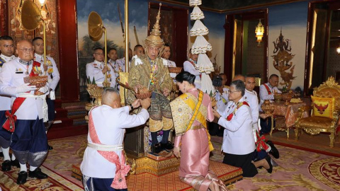 Fotogalerías Este artículo se publicó hace 7 años.Rey de TailandiaLa coronación del rey de Tailandia, en imágenesTamaño de letraColor de fondoComparteComentaPúblico 04/05/2019 14:27Tamaño de letraColor de fondoComparte0Comenta El rey Vajiralongkorn de Tailandia se coronó hoy con boato en el Gran Palacio Real de Bangkok, lo que consolida el inicio de una nueva época en el país tras la de su padre, el venerado Bhumibol Adulyadej, fallecido en 2016. EFE/EPA/ROYAL HOUSEHOLD BUREAU HANDOUTPublicidad Vajiralongkorn fue purificado con agua sagrada y recibió en el momento álgido la corona dorada, de 7,3 kilogramos y con forma de espiral, en una ceremonia de inspiración hindú y budista, lo que refleja el sincretismo religioso en Tailandia. EFE/EPA/ROYAL HOUSEHOLD BUREAU HANDOUT El padre del actual monarca era considerado el padre de la nación y un guía para la mayoría de los tailandeses, que lo veneraban con un fervor casi religioso. EFE/EPA/ROYAL HOUSEHOLD BUREAU HANDOUT EFE/EPA/ROYAL HOUSEHOLD BUREAU HANDOUT EFE/EPA/DIEGO AZUBELPublicidad EFE/EPA/DIEGO AZUBEL EFE/EPA/DIEGO AZUBELComparteComentarios de nuestros socias/os¿Quieres comentar?Para ver los comentarios de nuestros socias y socios, primero tienes que iniciar sesión o registrarte. Escribe tu comentarioRecuerda las normas de la comunidad.Enviar Descartar