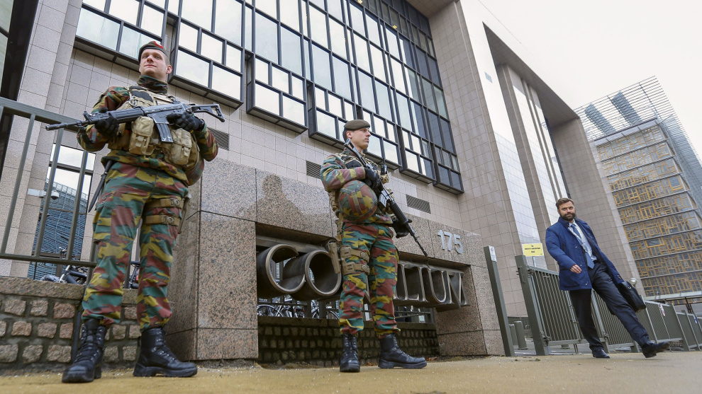 Fotogalerías Este artículo se publicó hace 11 años.Europa se blinda ante la amenaza terroristaTamaño de letraColor de fondoComparteComentaPúblico17/11/2015 13:41-Actualizado a17/11/2015 17:33Tamaño de letraColor de fondoComparte0Comenta Soldados vigilan la entrada a la sede del Consejo Europeo en Bruselas (Bélgica). REUTERS/Yves HermanPublicidad Se mantiene la alerta antiterrorista en nivel 4 sobre 5 tras los atentados terroristas de Francia. EFE/Kai Försterling Dos policías vigilan los alrededores de Downing Street en Londres. REUTERS/Paul Hackett Un policía británico vigila las inmediaciones de Downing Street. REUTERS/Paul Hackett El Parlamento Europeo es custodiado por soldados en Bruselas. La entrada al Parlamento Europeo en Bruselas es custodiado por soldados. REUTERS/Yves HermanPublicidad Un policía custodia la entrada al Parlamento británico. REUTERS/Paul Hackett Un soldado en el aeropuerto de Niza, tras los atentados de París. REUTERS/Eric Gaillard Un soldado en los exteriores de la Basílica del Sagrado Corazón de París. REUTERS/Benoit TessierPublicidad Soldados patrullan junto a la plaza de San Pedro en Roma, Italia. EFE Agentes de policía italianos patrullan junto a la plaza de San Pedro en Roma, Italia. EFE Soldados permanecen en guardia ante el Coliseo en Roma, Italia. EFEComparteEtiquetasInternacionalAtentados de París 2015Comentarios de nuestros socias/os¿Quieres comentar?Para ver los comentarios de nuestros socias y socios, primero tienes que iniciar sesión o registrarte. Escribe tu comentarioRecuerda las normas de la comunidad.Enviar Descartar